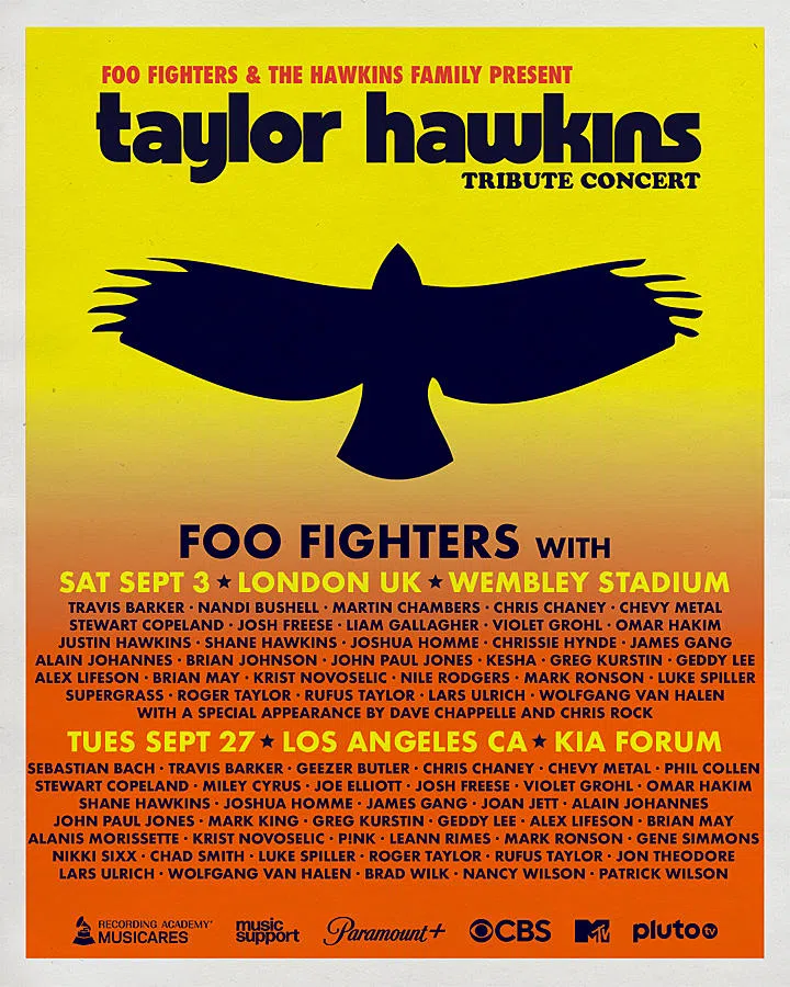 Earlier this summer, a major concert was announced to tribute the Foo Fighters’ Taylor Hawkins, who tragically passed away in March. “Foo Fighters & The Hawkins Family Present: Taylor Hawkins Tribute Concert” will be taking place on September 3rd at London’s Wembley Stadium and also on September 27th at the Kia Forum in Los Angeles.