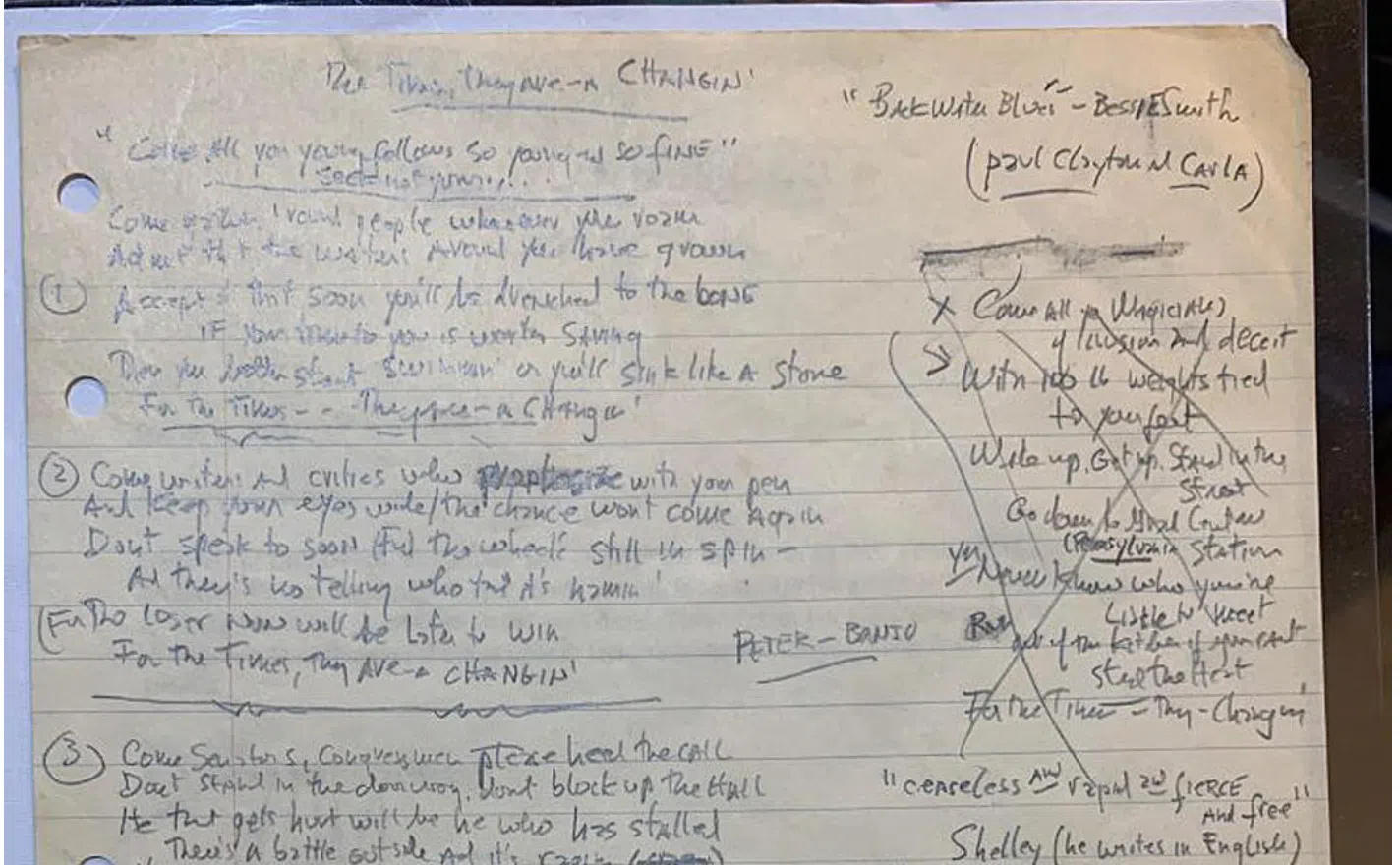 Bob Dylan’s Handwritten “The Times They Are A-Changin’’ Lyrics listed for $2.2M